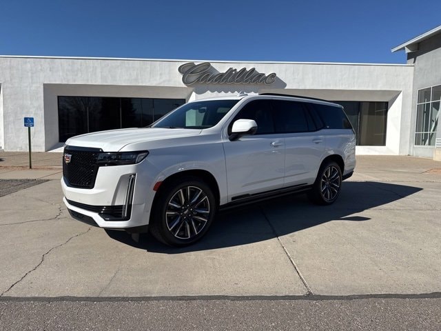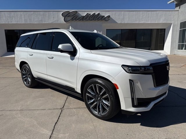 Clean CARFAX. Crystal White Tricoat 2024 Cadillac Escalade Sport Platinum AWD 10-Speed Automatic 6.2L V8 AWD, Jet Black Leather.