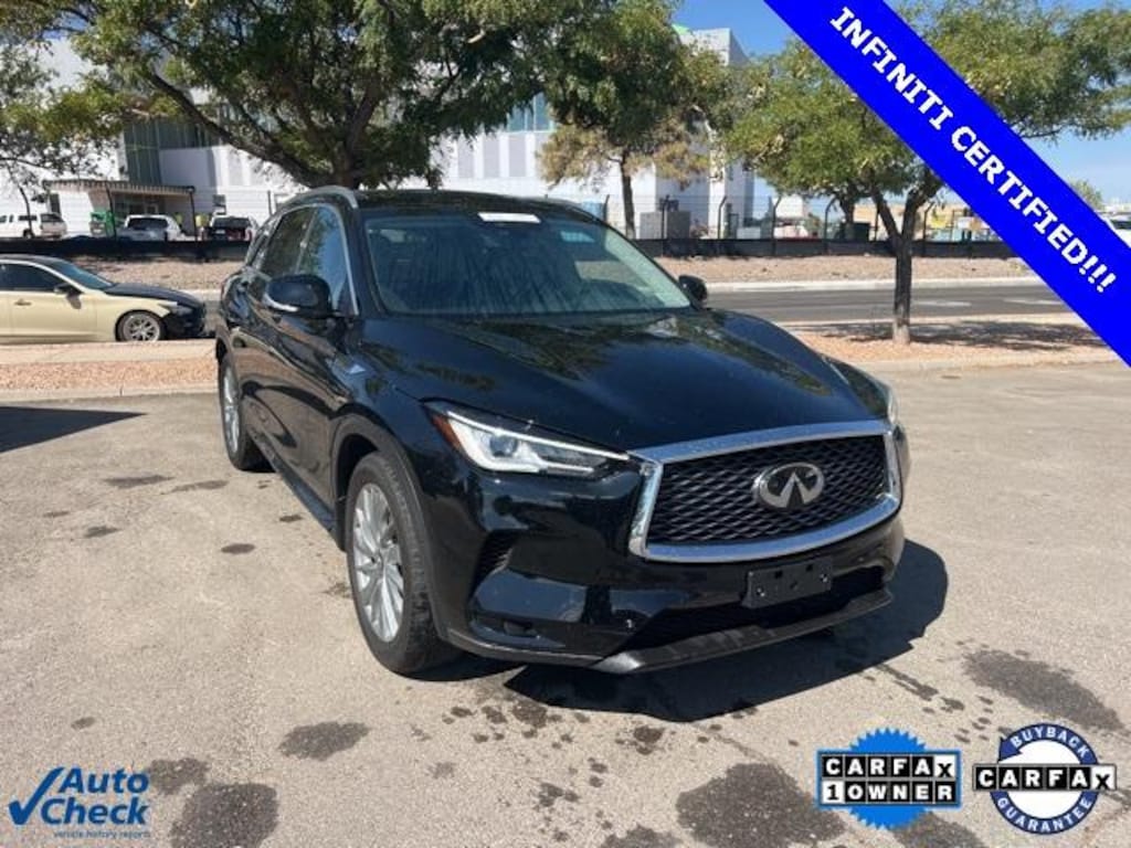 CARFAX One-Owner. Clean CARFAX. Certified. Black Obsidian 2024 INFINITI QX50 LUXE AWD CVT I4 Odometer is 6425 miles below market average! 22/28 City/Highway MPG INFINITI Certified Pre-Owned Details: * Warranty Deductible: $0 * Limited Warranty: 72 Month/Unlimited Mile from original in-service date * 167 Point Inspection * Transferable Warranty * Roadside Assistance * 1-Year Prepaid Service Visit Included. 6 Year/75,000 Mile Warranty for Vehicles With Less Than 15,000 Miles at Time of Certification. 6 Year/Unlimited Mile Warranty for Vehicles with 15,001-60,000 Miles at Time of Certification. INFINITI ONLY Models Qualify. * Vehicle History