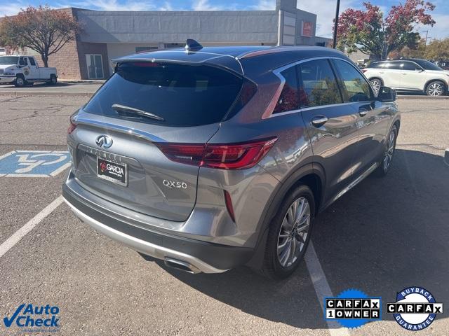 CARFAX One-Owner. Clean CARFAX. Certified. Graphite Shadow 2024 INFINITI QX50 LUXE AWD CVT I4 22/28 City/Highway MPG INFINITI Certified Pre-Owned Details: * Limited Warranty: 72 Month/Unlimited Mile from original in-service date * 167 Point Inspection * Roadside Assistance * Transferable Warranty * 1-Year Prepaid Service Visit Included. 6 Year/75,000 Mile Warranty for Vehicles With Less Than 15,000 Miles at Time of Certification. 6 Year/Unlimited Mile Warranty for Vehicles with 15,001-60,000 Miles at Time of Certification. INFINITI ONLY Models Qualify. * Vehicle History * Warranty Deductible: $0